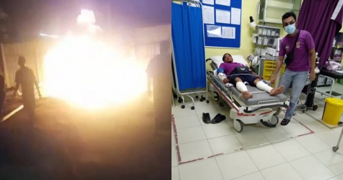 初步了解,两名伤者是在清理地下燃油库时,燃油库不知何故起获燃烧,其中一人的双脚被火舌灼伤右脚,另一人则双脚都被灼伤。