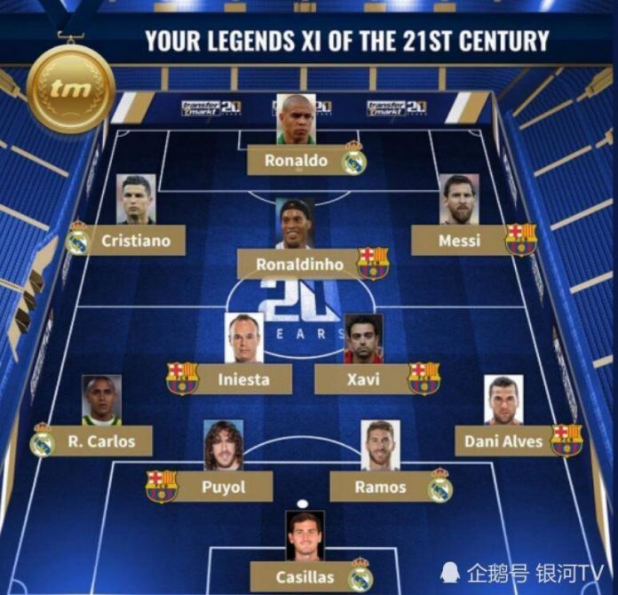 (柏林5日综合电)德国权威网站《转会市场》就21世纪最佳阵容发起了一项投票,最终结果显示,皇家马德里和巴塞罗那两支西甲球队包揽了全部11人,其中皇马5席,巴萨6席,由此可见西超双雄过去20年在足坛的地位。