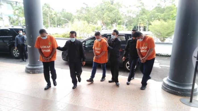 3人涉嫌收取6000令吉,以作为不对付甲市区某餐饮店违反行动管制令标准作业程序的贿赂金。