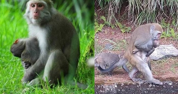 台湾的玉山国家公园塔塔加园区石山地区,近日一只出生3、4个月的小猕猴,在路边被游客车辆撞死,母猴见状上前,顾不得小猴已没了气息,仍抱着尸体觅食度日,甚至会舔拭帮小猴清洁,令人感到哀伤。