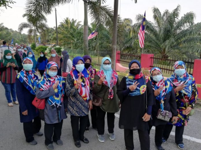 此外,部分女选民也配合国庆日,相约戴上印有国旗图案的头巾前往投票中心,履行选民的责任。