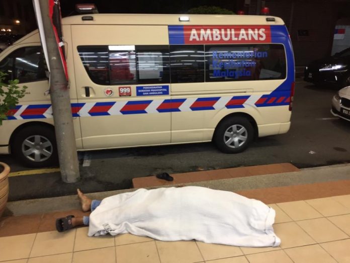 (马六甲10日讯)疑心脏病发,一名六旬印裔老翁呼吸困难,向邻近店家求助,惟却等不及救护车到来,不幸逝世!