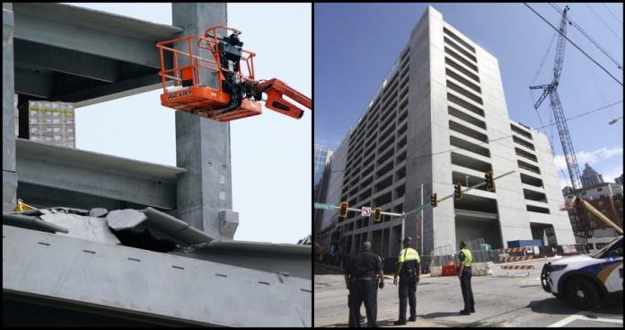 美国亚特兰大市中心一处正在兴建的停车塔于11日才刚发生坍塌事件,造成6人受伤,结果时隔1日又发生坍塌意外;这第2次坍塌,让刚好站在坍塌混凝土板上的一名工人,连摔了8到10层楼,腿部受伤,目前正在医院治疗。
