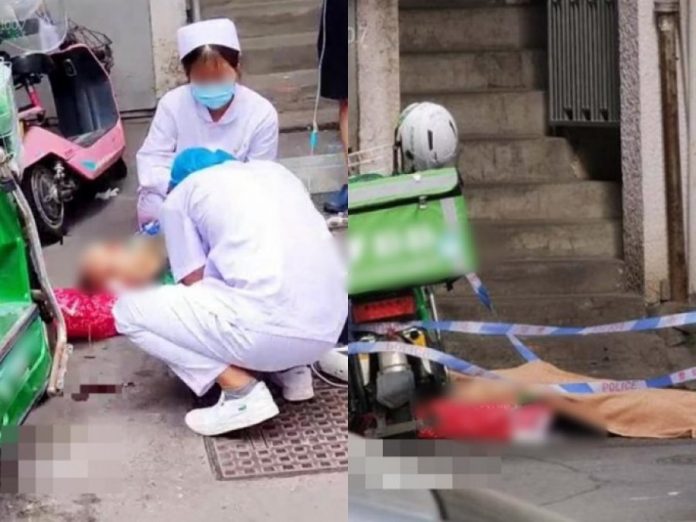 中国福建省福州市一名外送员为了赶时间匆忙下楼,不慎从楼梯上滚下,倒卧在自己电动车旁,医护人员赶到时,他已无生命迹象,当场证实死亡。