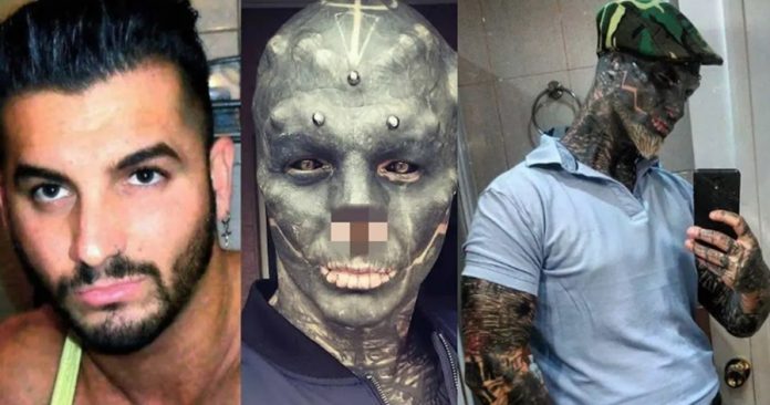 据《每日星报》9月22日报道,法国一名男子将自己的鼻子切掉,舌头割开,只为整形成“外星人”的模样。尽管曾经的他非常英俊,他仍表示自己并不后悔接受整形手术。