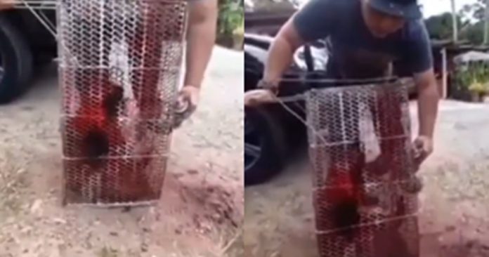 短短不到90秒的视频显示,猴子被喷上红漆时,在笼中痛苦地挣扎。