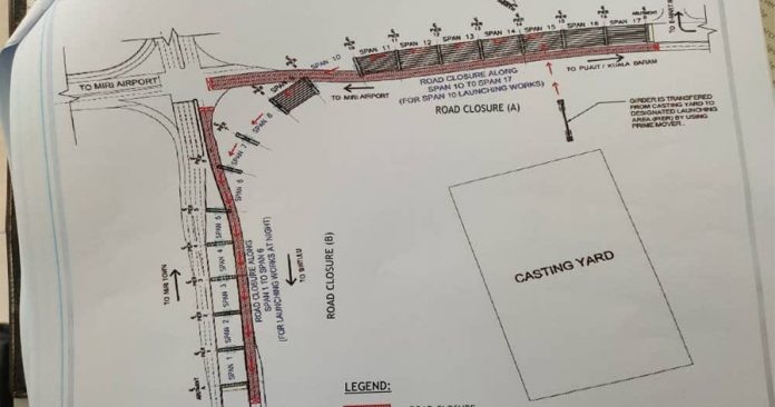 根据北婆罗洲大道公司的计划,机场路口高架桥共分成10个跨距组装工程,其中第10组、第6组,以及第5至第1组的工程涉及关路。