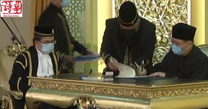 他们在州元首敦朱哈面前宣读就职誓言后,在亚庇高庭法官面前,签署就职委任状。