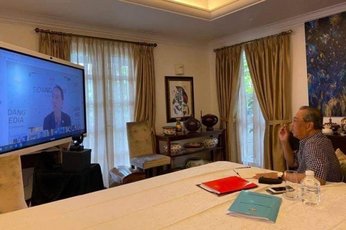 慕尤丁今日在住家召开视频会议,主持国家安全理事会新冠肺炎疫情特别会议。