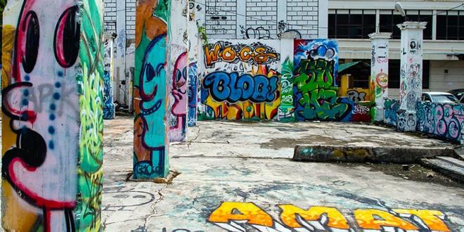 在美里市区体育路附近,即室内体育馆垃圾槽围墙、双溪巴翁河畔一道围墙,及扇型公园砂州图书馆旁建筑物一面墙壁就有三面典型的涂鸦艺术。
