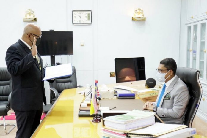 (怡保15日讯) 巫统高乌州议员拿督阿兹尼今日在霹雳州务大臣拿督斯里阿末费沙面前,宣誓就任为大臣新任政治秘书。