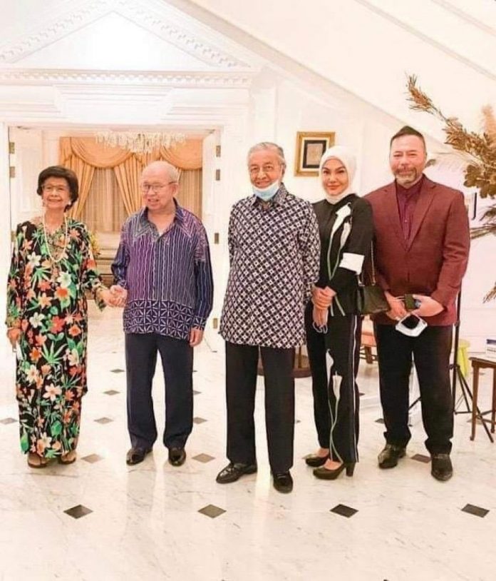 照片中前首相夫人敦西蒂哈斯玛与东姑拉沙里握手,而马哈迪和亲信凯鲁丁也微笑的一同合照。