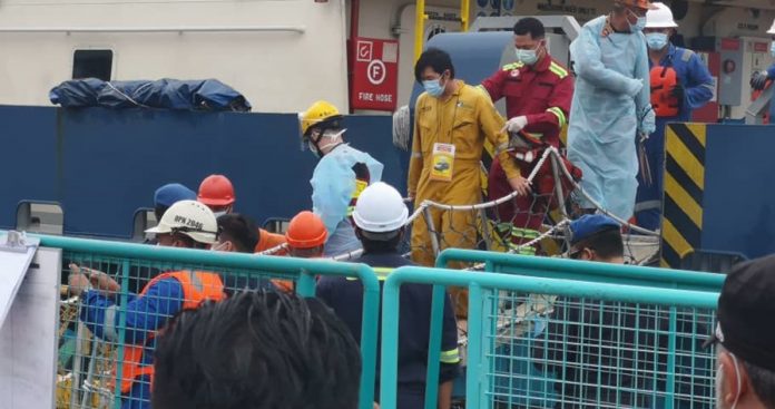 (美里27日讯)船只撞到油井架,船上125人跳海逃生事件,获救船员于今日中午12时许抵达美里珠巴一私人码头,其中2名伤者已被送往医院。
