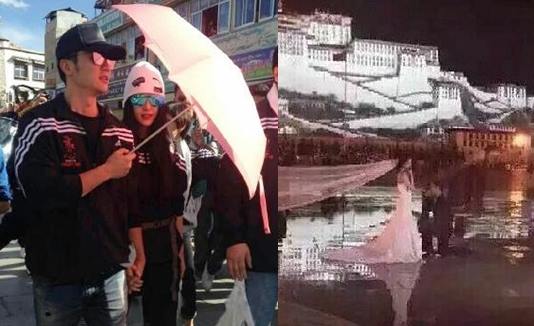 微博一名名为「达人钧钧」的网民今晨上载了疑似范冰冰李晨两人在布达拉宫前的接吻照。照片中女方还疑似穿上婚纱,该网民附文称李晨已在布达拉宫前向范冰冰求婚。