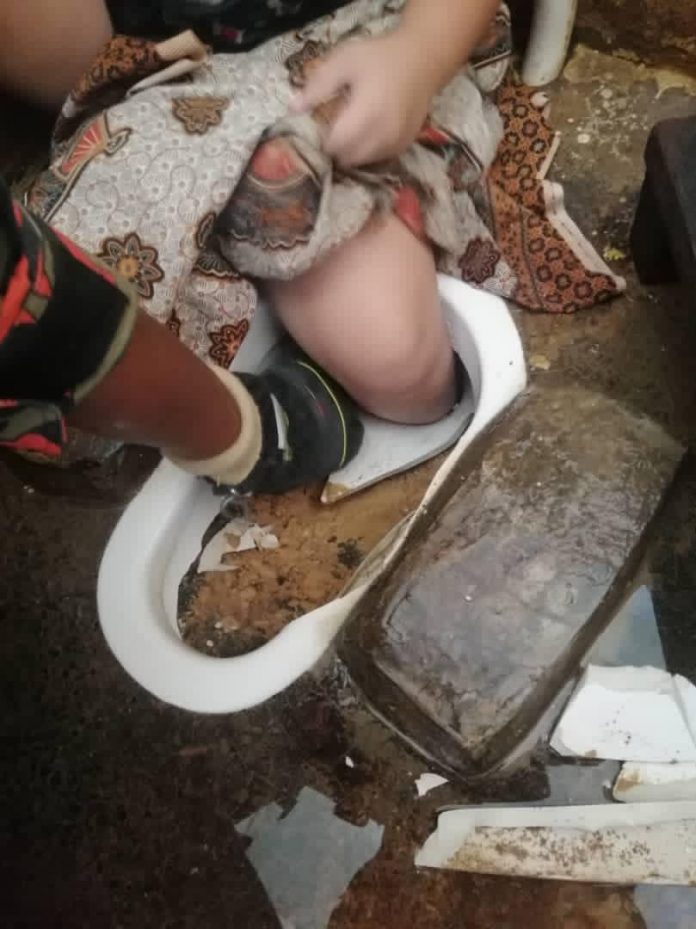 (山打根19日讯)一名10岁男童上厕所时失足,左脚插入蹲式马桶内,需劳动消拯人员到场解困。