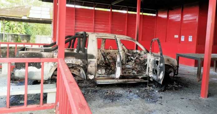 上述货卡在义山土地庙烧毁事故是于今早被发现,有关事件相信是于昨晚发生。