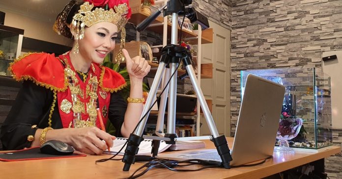 (美里26日讯)一名来自砂拉越美里的老师,透过穿着各种传统服装,为无聊的网课增添乐趣。