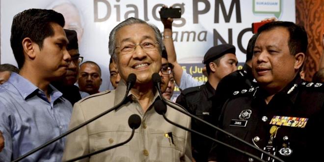 马哈迪今日以非政府组织代表身份出席「毫不隱瞒」对话会,在首相拿督斯里纳吉缺席后,受到主持人邀请上台演讲,却遭到警方要求中止。