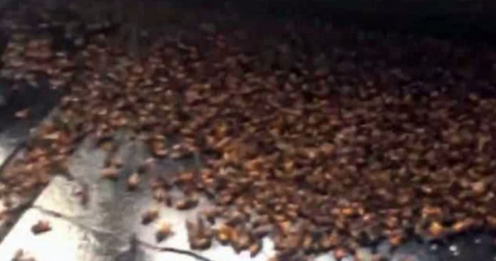 中国河南一户人家的厨房内,飞进了1、20只的蜜蜂,男主人为了保护妻子,便将蜜蜂全部打死,本以为平安无事了,没想到隔日厨房内竟飞来了成千上万只蜜蜂,就像是来报仇一般。