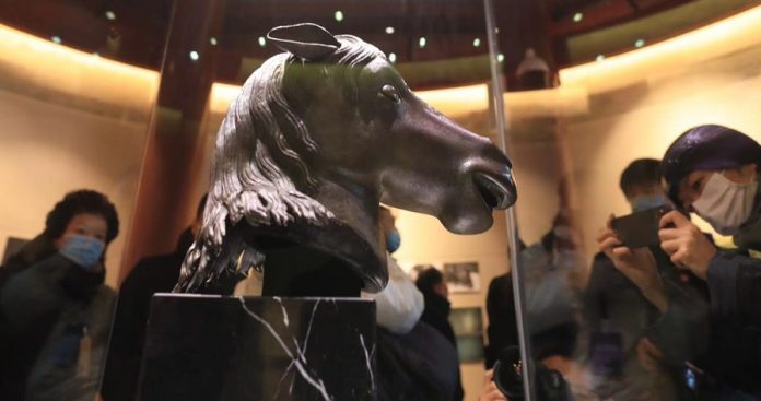 据悉,圆明园马首铜像,为清代圆明园长春园西洋楼建筑群海晏堂外十二生肖兽首喷泉主要构件之一。1860年英法联军侵入北京,圆明园惨遭劫掠焚毁,马首铜像与其他11尊兽首铜像一同流失海外。