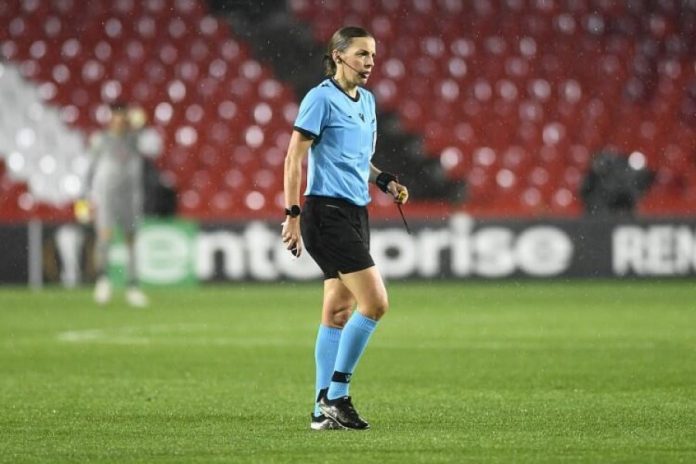 史蒂芬妮-弗拉帕特是一位富有传奇故事的女裁判,她是第一位在法甲赛场上担任主裁判的女性,同时主吹了2019年法国女足世界杯决赛。2019年8月欧洲超级杯,利物浦经过点球大战击败切尔西的比赛,就是史蒂芬妮-弗拉帕特执法的,她这次担任主裁判也创造了一个纪录,成为了欧战史上第一位女性主裁。去年10月,史蒂芬妮-弗拉帕特“再接再厉”,成为欧洲联赛史上第一位女主裁。