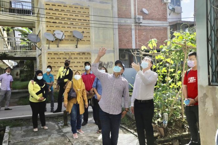 (亚庇1日讯)路阳区州议员冯晋哲今早陪同沙巴房屋和城市发展局(LPPB)新上任主席拿督马雄巴纳到访视察甘拜园组屋。