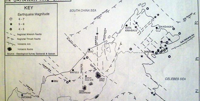 他说,就好象巴南和拉让江地区其实是处于地震活跃断层线。根据矿物与地球科学于2006年的报告,当时计划中的巴类水坝及巴南水坝处于地震活跃断层线。