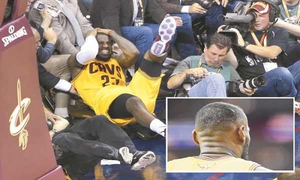 骑士开场就打出一波7比0,但第一节最后4分半钟,勇士却打出一波14比4的攻击波,一举將比分反超为31比24。第二节,詹姆斯遭遇惊险一幕,他在一次上篮中被博古特阻拦,身体失去平衡后撞向场边记者器材,结果把头磕出了口子,顿时鲜血流出。半场结束时,勇士以54比42领先;而42分也是骑士本季整个季后赛的上半场最低得分。