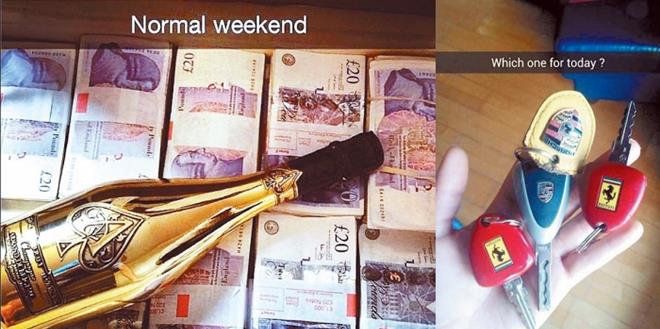 去年中,面子书一个名为「Rich Kids Of Snapchat」的页面引发热议;据知,该页面由一名英国的17岁男孩创建,吸引了全球的富二代一同炫富。他把自己奢华的生活照发送给知名的富二代和青 年富豪,並接受对方的炫富照,筛选之后,再上传到Richkidsnaps。