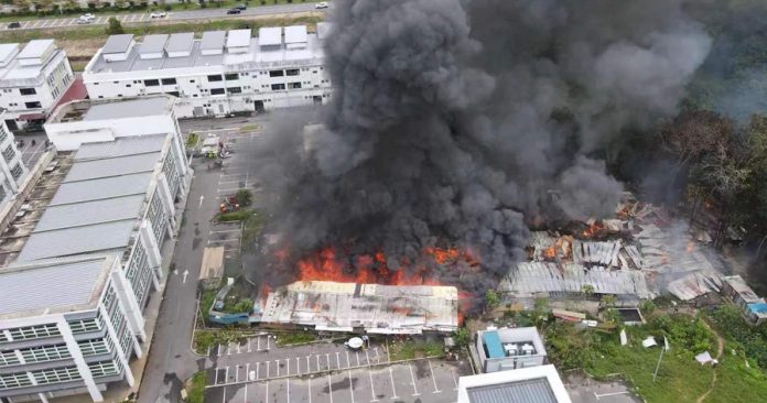 砂拉越北砂 美里埔奕7号路员工宿舍大火 2021年2月18日 (本报美里18日讯)埔奕7号路附近某公司员工宿舍发生大火,瞬间被烧毁,目前损失有待估计。Advertisement 这场大火于今日午间1时47分发生,罗冰消防单位调派2辆消防车及17名消防员赶抵现场灌救。 失火地点为本市某集团员工宿舍,事发时大部分员工在工作地点上班,只有一些妇嬬小孩留在宿舍内,幸没造成人命伤亡。 火势迅速传开,滚滚黑烟冲天而上,大家赶紧抢救财物,极力将能搬动的物品从宿舍单位内救出。 大火发生原因暂时未详,消防单位刻在调查。