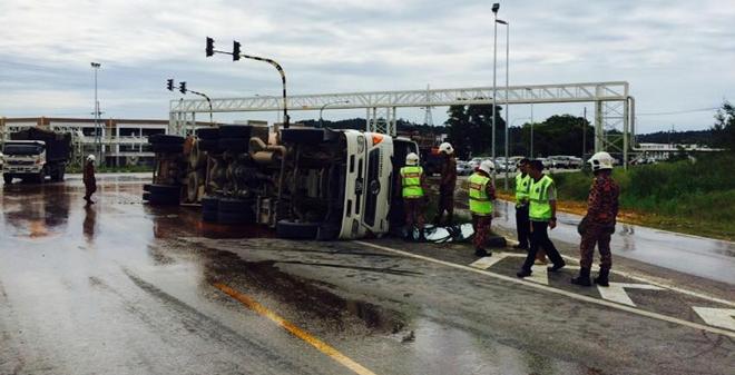 肇祸油槽车当时驶经交通灯系统时,准备转弯入路口,岂料不幸失控意外翻覆,导致车斗上的棕油倒落道路。