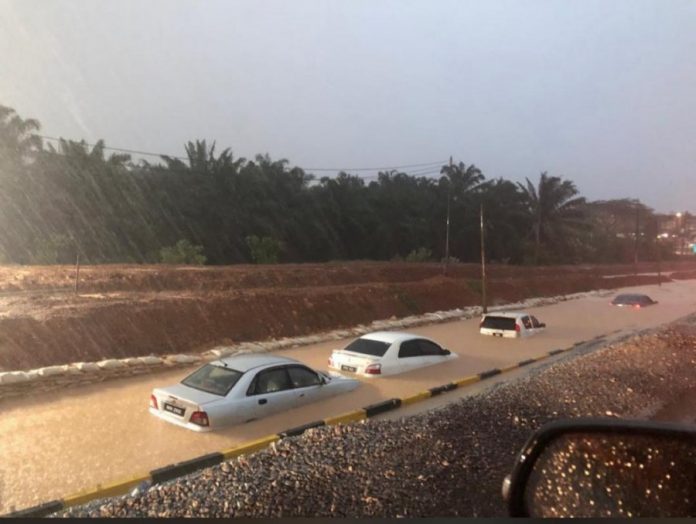 (马六甲6日讯)今天傍晚的一场倾盆大雨,导致甲市多个地区发生闪电水灾,其中古鲁蒙柏丹那花园的道路沦为排水道,根据网民拍摄的视频,现场至少有5辆车浸泡在水中!