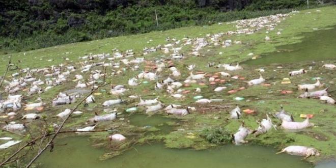 报导指,漂浮在水面上的有2600多只,更多的还在水面下的猪栏里。截止到週五晚,打捞人员已经打捞了800多只。