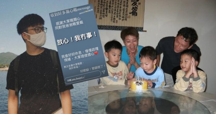 经过3天的沉淀,二儿子文信在社交平台的限时动态发文,感谢大家的安慰之馀,表面上充满正能量,但字里行间,隐约道出淡淡的哀伤。