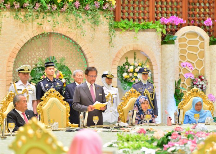 在会议接束后,马来西亚首相丹斯里慕尤丁及其夫人出席了由汶莱苏丹陛下所设的官方午宴。