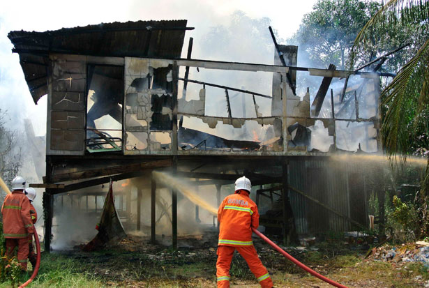 (本报林梦26日讯)双溪泊央一间高脚木屋今日遭火魔光顾,瞬间被烧成废墟,尚幸火患发生时无人在家,距离开斋节还有21天,火患的发生导致马来居民流离失所。