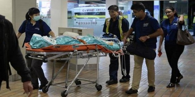 (新加坡30日讯)在台湾八仙乐园粉尘爆炸事件中受重伤的新加坡女子梅根罗(译音,Megan Loy),今日清晨搭乘医疗专机抵达新加坡后,从机场被送往新加坡中央医院。