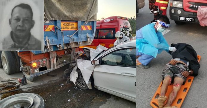 (本报民都鲁12日讯)轿车猛憾停在路旁的罗里车尾,造成轿车司机夹困重伤,当场不治身亡,夫妻因此阴阳相隔。
