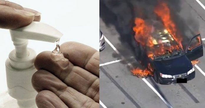 蒙哥马利郡(Montgomery County)消防局表示,香菸灰烬碰到一小滴干洗手液,酿成大火。发言人说,「在车上这种不通风的环境,抽菸又使用干洗手液,真是一个糟糕的组合」。
