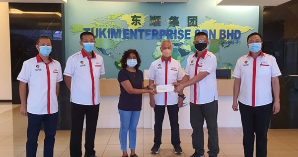 沙巴中国总商会会长拿督刘顺泰今早将该笔款项,移交予该校老师罗斯琳达维。