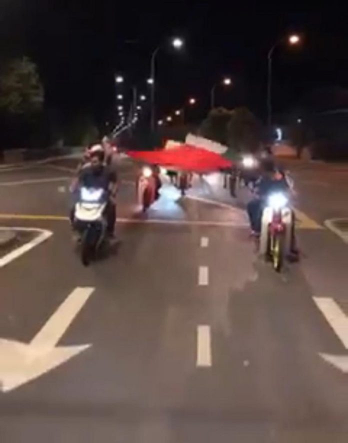 (马六甲20日讯)11名支持巴勒斯坦的男子骑摩哆并由后座乘客手持旗帜在路上“游行”,危险动作遭人举报而被警方调查,3人获警方保释,其余8人被延扣至明天。