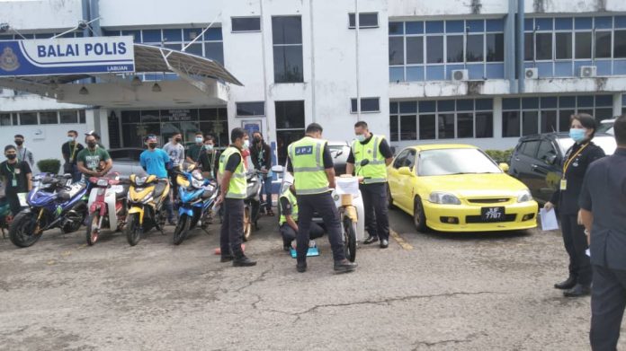 据纳闽警方发布的文告,三造乃于纳闽警区总部举行了一次特别行动(噪音),将上周六,在纳闽交通调查和执法部(BSPT)举行的街头取缔行动中,押回的16辆摩托车,于今天进行了联合检查行动。