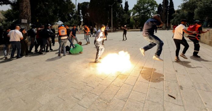 但才刚过12小时,再传出以色列警方冲进阿克萨清真寺对民众丢掷震撼弹,发射催泪瓦斯,民众也向警方丢掷石块。目前尚未传出伤亡,也不清楚事发原因。