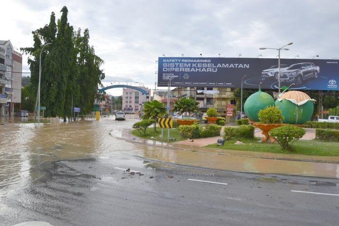 洪水淹没了市区里的铁道路段,致使火车服务中断了3天,预料川行保佛与亚庇两地的火车明日依旧停驶。