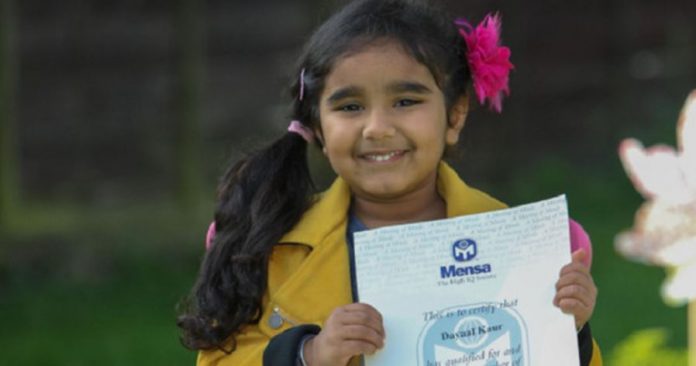 英国伯明翰一名年仅4岁的女童考尔(Dayaal Kaur),在IQ测试中取得142分,得分仅次于爱因斯坦,而获世界顶级高智商组织门萨(MENSA)纳入会籍,并被誉为「天才女孩」。