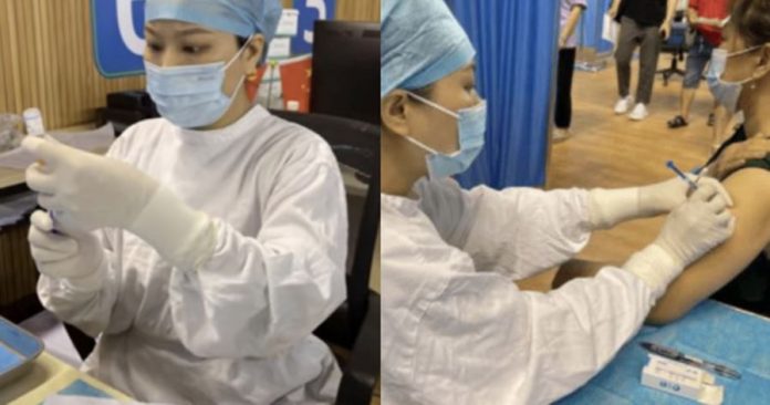 根据《广州日报》报导,中国人民接种疫苗量不断创新高,背后有一群辛苦的医护人员。人民医院护理师黄俊媚就是一位有名的「快手」,一小时能为60人接种疫苗。