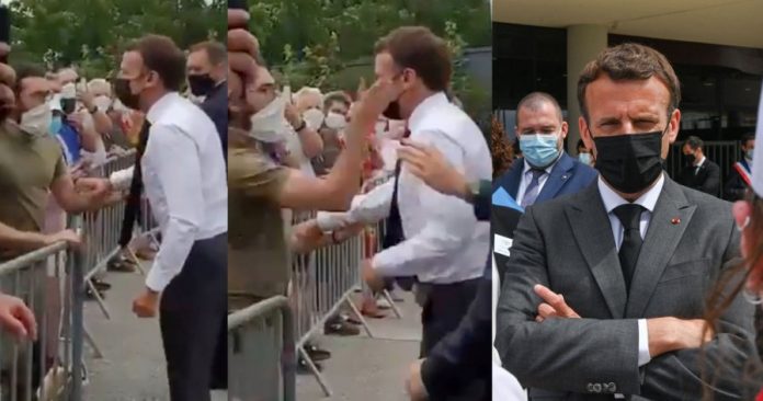 掌掴事件发生于当地时间周二下午,法国BFM电视台公布的两段视频显示,马克龙身著衬衣,试图与围栏外的民众握手致意,一名身穿绿色上衣男子赶到围栏前面,先以左手握住马克龙,再用右手掌掴对方面部,期间曾大喊“打倒马克龙主义”。