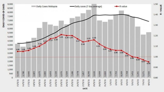 (吉隆坡9日讯)昨日的新冠肺炎全国基本传染数录得0.95,连续10天呈下降趋势。