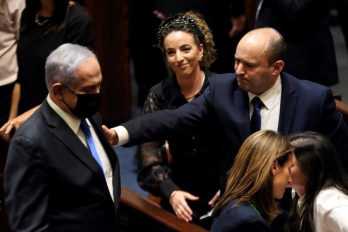 内塔尼亚胡表情凝重,与继承人握手,然后匆匆离开国会。49岁的贝内特是科技界大亨,曾任国防部长,他表示新政府代表所有以色列人。右翼议员向他高叫“骗子”和“罪犯”等口号。贝内特宣誓就职后,召开首次内阁会议。