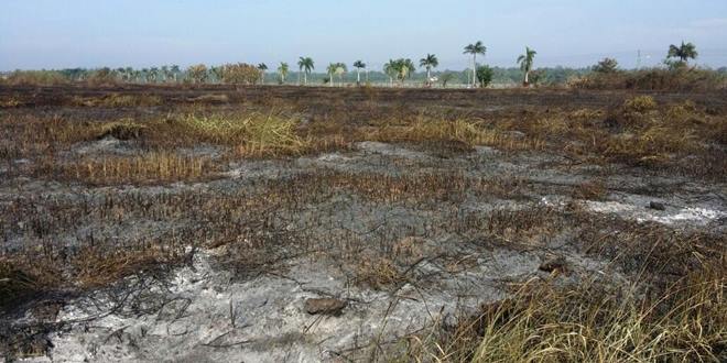 据了解,昨晚或今早空气弥漫的烧焦味应该是来自丽华宝岛于昨天发生的野火事件,共有约3依甲草地被烧。记者于今天回到现场发现,一大片的草地被烧光了,而且,都烧到了路旁水沟处。